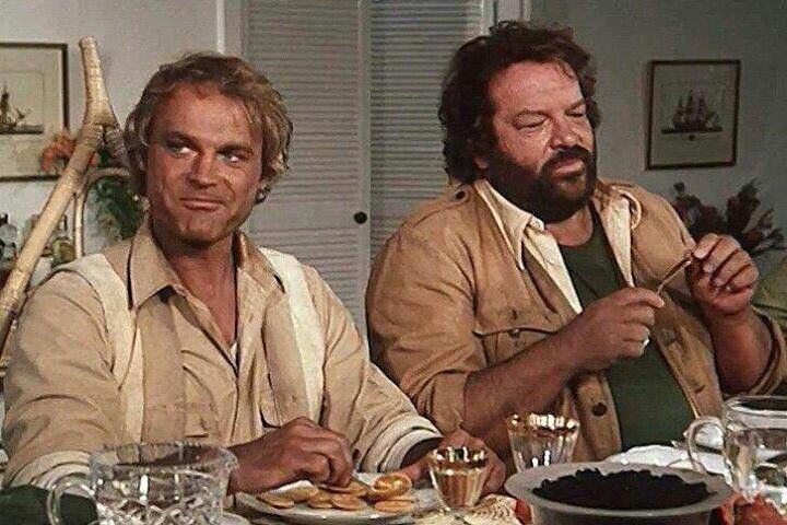 Рецептура фильмов с участием дуэта была проста донельзя: парни играли крутых ребят, которые всегда побеждали своих врагов; их герои были смешными, в их фильмах никого не убивали, хотя злодеев там было пруд-пруди; несмотря на наличие у противоборствующих сторон огнестрельного оружия, с негодяями наши герои предпочитали разбираться по старинке – с использованием кулаков и подручных предметов.