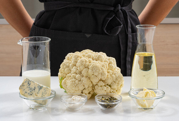 Вкусная еда Ингредиенты Цветная капуста 1 штука Растительное масло 30 мл Сливочное масло 30 г Пшеничная мука 1 столовая ложка Голубой сыр 50 г Молоко 200 мл Тыквенные семечки 15 г Соль по вкусу Молотый черный перец по вкусу 1. Подготовить все ингредиенты. Духовку разогреть до 200 градусов. 2. Кочан разрезать вдоль кочерыжки на стейки толщиной 2–3 см. 3. Выложить стейки в один слой на разогретый и смазанный растительным маслом противень. 4. При помощи кисточки смазать сами стейки растительным маслом, посолить и поперчить. 5. Поставить на средний уровень духовки на 30 минут, во время приготовления один раз перевернуть. 6. Сыр раскрошить или мелко нарезать. 7. Масло растопить в сотейнике на среднем огне. 8. Вмешать в него муку и готовить, помешивая, примерно 1 минуту, чтобы масло и мука стали единым целым. 9. Продолжая мешать, понемногу влить молоко, чтобы соус стал однородным и нежным. 10. Довести соус до кипения и вмешать в него сыр. 11. Продолжать готовить, пока сыр не смешается с со