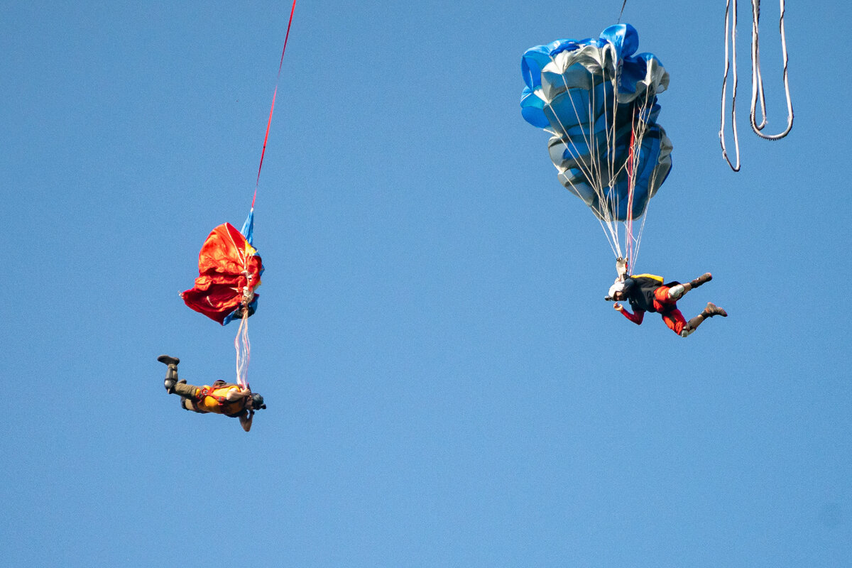 - 9:45 Показательные и акробатические бейс-прыжки // Место: Скайбридж, площадка Bungy 207 и Bungy 207 Pro