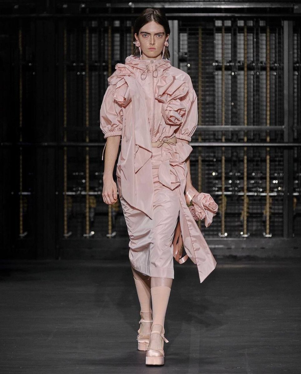 Ирландский дизайнер Симон Роша – постоянный участник Недели моды в Лондоне, покоряющий наши сердца. В весенне-летнем сезона 2024 мы очутились в репетиционном зале Английского национального балета. Небольшое помещение было оформлено в темных тонах, а белая конструкция объединяла женские фигуры, стоящие в центре зала. Инструментальные композиции дополняли атмосферу, отдавая дань уважения исторической балетной школе. В первой половине коллекции силуэт анорака был искажен блестящими акцентами в виде розочек, что позволило противопоставить грубый вид нейлонового материала чему-то необычайно элегантному. Полупрозрачные варианты были разделены настоящими цветами, спрятанными внутри, и переходили в спортивные костюмы с карманами и облегающим кроем. Огромные ленты, повязанные на рубашки и платья до колена, а также украшенные жемчугом костюмы и мотоциклетные куртки с кружевной отделкой. Каждое платье было украшено так, что могло сравниться со сложной отделкой и декором торта в стиле рококо. Впол