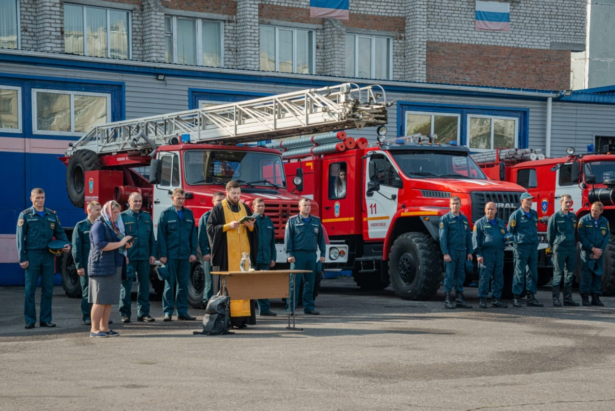 Священник обратился к собравшимся со словами благодарности за их нужный труд и самоотверженную работу по защите новокузнечан от губительного огня.