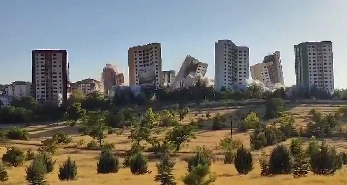 Эффектный снос пострадавших в землетрясении домов засняли в Турции В турецком городе Малатья власти снесли девять многоэтажек, которые пострадали от мощнейшего землетрясения в феврале этого года. Снос производился взрывным методом. Процесс попал на видео.