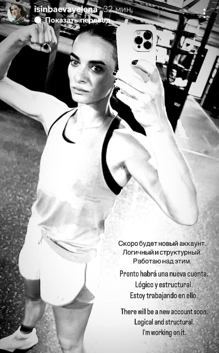 Поведение прославленной олимпийской чемпионки Елены Исинбаевой в соцсетях и ее внешний вид все больше тревожат подписчиков. Последнее ее послание и вовсе заставило поклонников волноваться о ее здоровье - физическом и душевном. Который день подряд Елена публикует снимки в черно-белых тонах с лаконичными подписями или вовсе без них. На последнем снимке, опубликованном сегодня, 18 сентября, Елена сделала селфи в спортзале. На лице - ни намека на улыбку. В одежде - ни намека на женственность. Даже грудь у похудевшей Елены словно рассосалась. Но самое главное - Елена признала отсутствие логики в своих поступках и пообещала, что скоро у нее будет новый аккаунт, логичный и структурный. Чем по сути автоматически признала, что в нынешнем ее аккаунте с логикой не все в порядке. Источник: Елена Исинбаева, инстаграм — относится к компании Meta, которая признана экстремистской и запрещена на территории в РФ