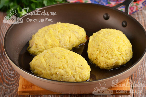 Котлеты – наше любимое блюдо, которое мы готовим из разного измельченного мяса, рыбы и разнообразными способами в духовке или на сковороде. Существует множество классических и неклассических вариантов, когда фарш дополняется крупами (рис, гречка), овощами (капуста, кабачки, морковь, картофель), сыром и грибами. Есть варианты котлет под овощной и сырной шубой, или в картофельной и морковной шубе. Котлеты в картофельной шубе – это сразу и гарнир, и основное блюдо. Для их приготовления подходит картофельное пюре или сырой картофель, который измельчается на терке. Сегодня готовлю котлеты под шубой из сырого картофеля. Это интересное и вкусное блюдо. Порции 4 Время подготовки 15 минут Время приготовления 60 минут Ингредиенты Инструкции 1. Для приготовления подходит любой фарш (у меня свиной). Такие котлеты можно готовить и из рыбного фарша. Измельченное мясо отправляем в миску, дополняем солью и черным перцем. Специи можно добавлять любые по вкусу. 2. В миску отправляем мелко нарезанный лук