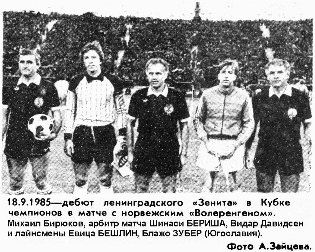 18 сентября 1985 года прошлогодний чемпион Советского Союза по футболу - ленинградский "Зенит" дебютировал в в Кубке европейских чемпионов. Первым соперником ленинградских футболистов оказался чемпион Норвегии "Волеренген". Первый тайм прошёл в упорной борьбе и закончился нулевой ничьёй. Героем второго тайма, как и всего матча стал нападающий "Зенита" Сергей Дмитриев, который отличным низовым ударом забил первый гол в ворота соперника. А ещё через 20 минут, тот же Дмитриев оформил дубль, реализовав пенальти. 2:0 и хороший дебют команды из северной столицы!