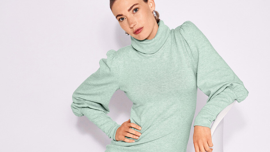 Выполнить широкие или узкие отвороты на рукавах, просто отвернув низ рукавов наверх. Чтобы зафиксировать новую длину, дополните рукава деталями, как у платья в спортивном стиле – с помощью хлястиков (пат) с пуговичной петелькой, пришитых с внутренней стороны рукавов, и пуговиц – с внешней стороны.