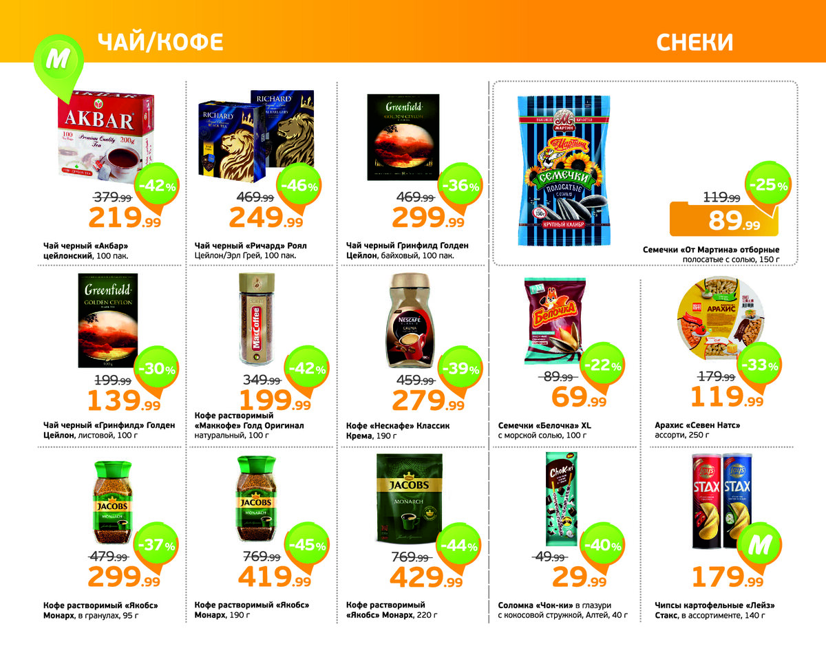 Каталог товаров в акции "Монетка" - с 18 сентября до 24 сентября - Чай, кофе и снеки
