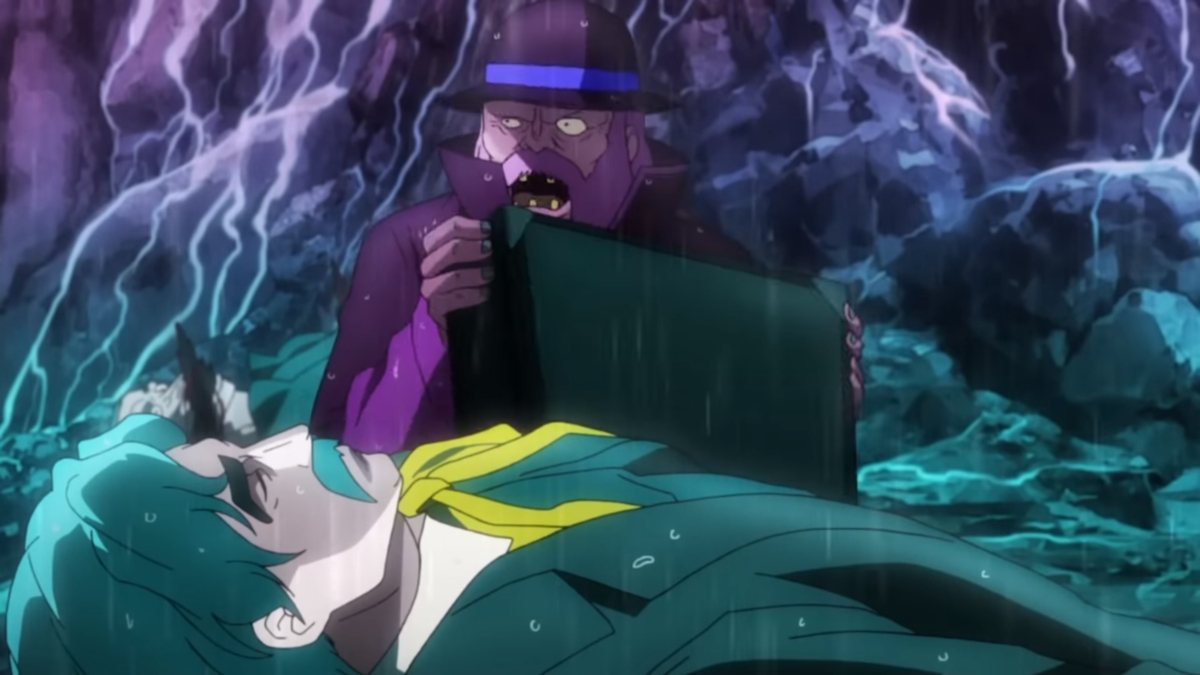 Дио рассказывает что он отравлял отца ДжоДжо и внезапно батя Джонатана оказывается всё это время стоял в этой комнате. Далее Дио попытался пырнуть ДжоДжо nozom но по какой то магии он попал в Джорджа Джостара.