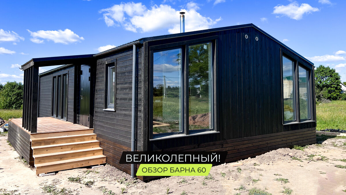 Барн 60 — это большой и просторный модульный дом с необычным и запоминающимся экстерьером, панорамными окнами и функциональным планировочным решением🖤