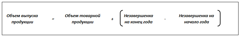 Для расчета объема выпуска продукции с учетом незавершенного производства необходимо воспользоваться другой формулой: