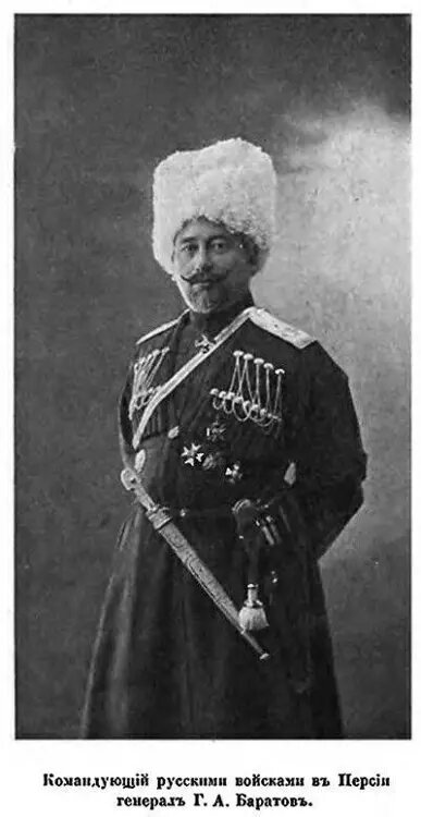 Для ее осуществления командование русской Кавказской армии по Каспийскому морю отправило в Иран Экспедиционный кавалерийский корпус численностью примерно в 14 тысяч человек при 38 орудиях под командованием генерала Н.Н.Баратова. Выбор командира корпуса был неслучайным. Начальник 1-й Кавказской казачьей дивизии Николай Николаевич Баратов по происхождению был грузином (его предки носили фамилию Бараташвили), хорошо знал Кавказ и Восток, прекрасно показал себя во время Русско-японской войны (награжден золотым оружием), а в 1915-м во время Сарыкамышской и Евфратской операций зарекомендовал себя энергичным, решительным и талантливым кавалерийским начальником, заслужив орден Святого Георгия 4-й степени. Баратов пользовался популярностью у терских и кубанских казаков, посвятивших своему генералу следующие строки в одной из своих песен: «Наш Баратов бодр и весел, / Всех к победе он ведет. / Что ж, казак, ты нос повесил? / Веселей гляди вперед!».