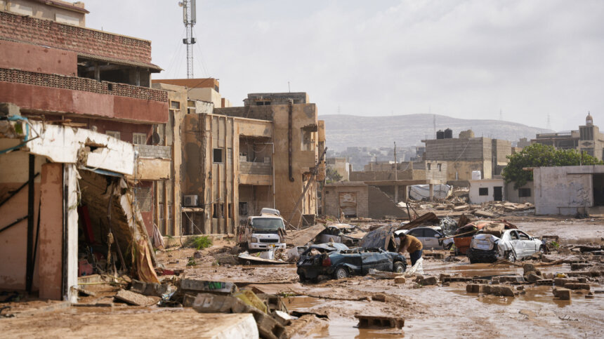 Тысячи людей оказались под завалами, десятки тысяч просто смыло в неизвестном направлении. Фото: www.globallookpress.com / The eastern-based government of; 5-tv.ru Российские спасатели сейчас работают в Ливии — они расчищают наиболее пострадавшие провинции, и сами называют этот участок очень сложным. Поток воды в считанные мгновения превратил целый город в руины. Тысячи людей оказались под завалами, десятки тысяч просто смыло в неизвестном направлении. Спасатели продвигаются метр за метром, осматривая разбитые машины, поднимая бетонные плиты, откачивая воду из подвалов, и собирая все, что приносит море. Корреспондент «Известий» Илья Аникеев передает подробности с места.