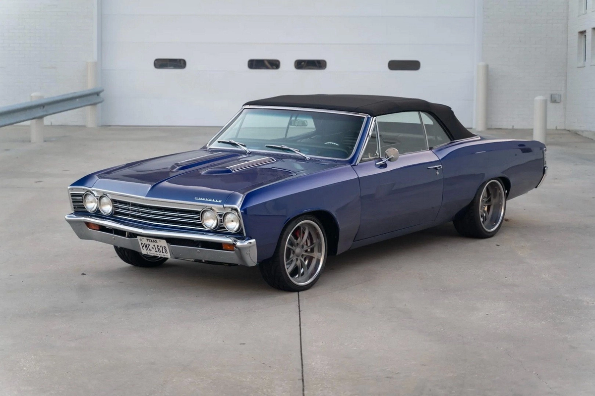 Первоначально кузов был окрашен в цвет Granada Gold, а затем был перекрашен в синий металлик. Другие визуальные особенности включают черный складной верх, хромированные бамперы, имитацию вентиляционных отверстий на капоте, двойные выхлопные патрубки и кастомные 18-дюймовые колеса. Он также может похвастаться гидроусилителем руля в сочетании со следующими модификациями подвески: регулируемые койловеры QA1, передние и задние стабилизаторы поперечной устойчивости, трубчатые передние рычаги подвески и трубчатые задние продольные рычаги. Что касается производительности, мы имеем дело с замененным двигателем V8 объемом 355 куб.см, который, как говорят, был восстановлен компанией из Небраски. V8 поставляется с электронной системой впрыска топлива Holley Sniper, трубчатыми коллекторами, алюминиевыми крышками клапанов, алюминиевым впускным коллектором Edelbrock, поликлиновым ремнем и алюминиевым радиатором. Это неплохая установка , и, по словам продавца, она генерирует 391 лошадиную силу и