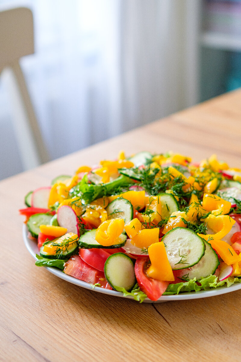 Овощи берите свежие, сочные и ароматные, тогда салат будет особенно хорош. Ингредиенты на 4 порции: