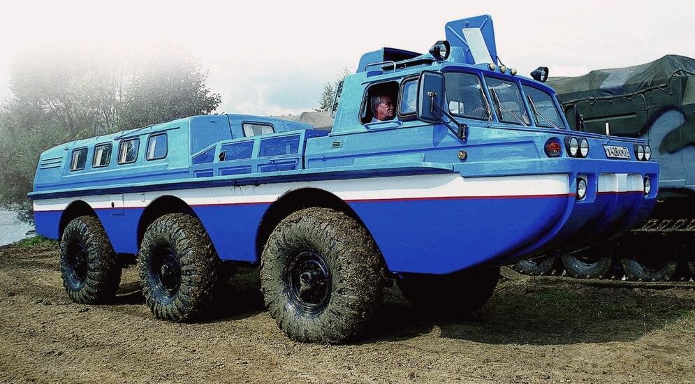 ТОП-5 интересных вездеходов эпохи СССР Не секрет, что в Советском Союзе просто обожали делать нечто грандиозное. Именно поэтому здесь создавались вездеходы (и не только). Немало достойных представителей советских вездеходов можно найти и приобрести даже в наше время. Но посмотрим, чем удивит нас гений советской инженерной мысли. Военный вездеход-амфибия «Дельфин» (ЗИЛ-135П) Одного лишь взгляда на этого 14-метрового гиганта будет достаточно, чтобы подумать – этот вездеход мало похож на дельфина, а скорее напоминает кита. Изначально транспорт такого класса создавался для роли самоходной понтонной переправы, но концепт изменился, «Дельфин» превратился в полноценный бронетранспортер, способный тащить 22 человека и 5 тонн груза. Причем при желании он мог выполнять водно-наземные спасательные операции. Сам вездеход представляет собой единственную в мире конструкцию с несущей конструкцией из полиэфирного стеклопластика с прослойкой, а не металла или иных, более популярных материалов. Грузово