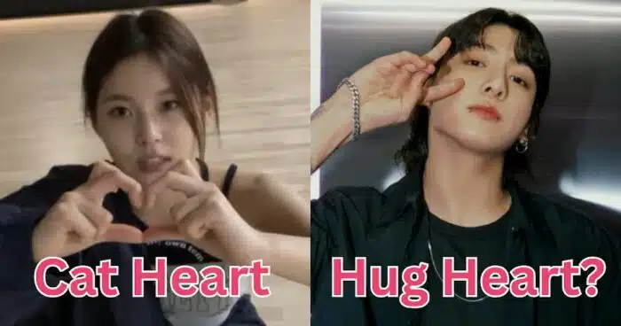 K-Pop айдолы придумывают много различных жестов для фотографий. Самый известный жест – это сердечко на пальцах, тренд, который зародился в Южной Корее. Один из недавних трендов – «сердечко на щеке». Рукой надо изобразить половинку сердца и приложить ее к щеке. А недавно Кюджин из NMIXX продемонстрировалf два новых типа сердечек: «кошачье сердечко» (поверх обычного сердечка вы показываете кошачьи ушки) и «заячье сердечко» (большие пальцы образуют маленькие заячьи ушки). Чонгук из BTS также недавно придумал новый тип сердечка – «сердце для объятий». Он как будто держит обычное «сердечко» в своих объятиях. Он демонстрировал этот жест в прямом эфире. И даже показал этот жест в аэропорту. Чонгук «продвигает» этот жест и за рубежом. Похоже, это может стать новым трендом!