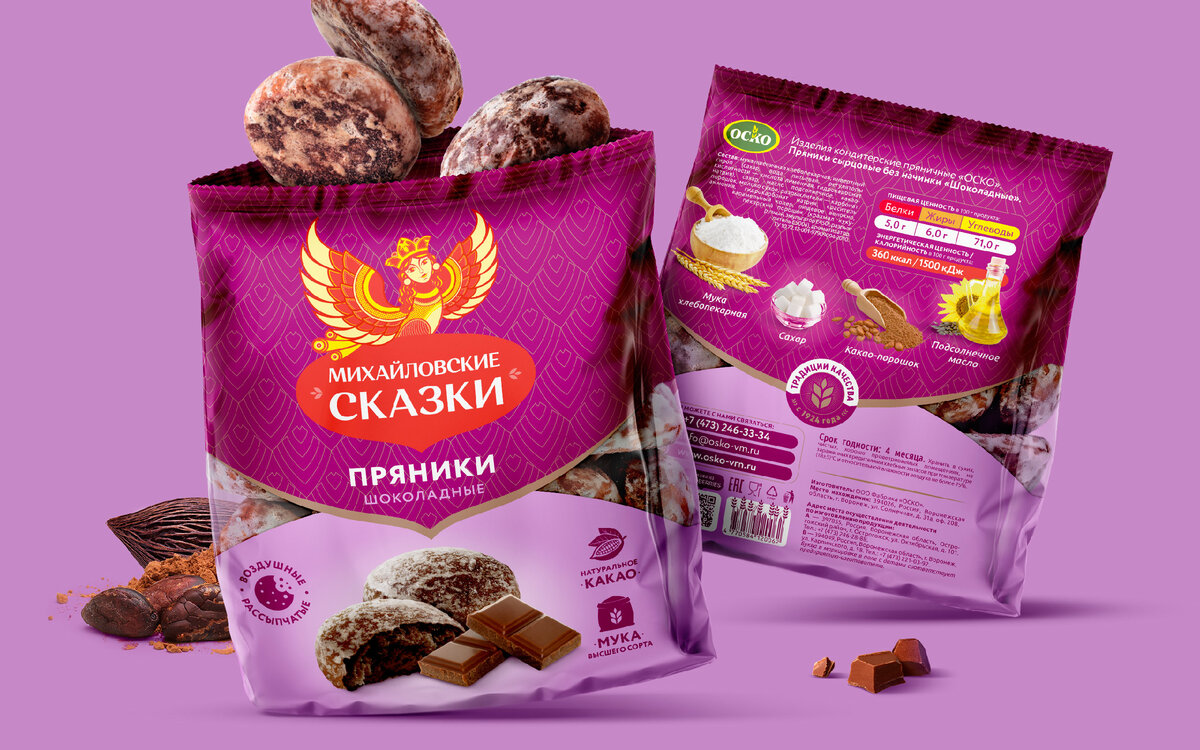 Компания «ОСКО» заботится о сохранении здоровья любителей сладостей, поэтому все изделия выпускаются без использования ГМО, пищевых добавок и низкопробного сырья. Отлаженная система контроля на различных этапах производства позволяет поддерживать качество продукции на самом высоком уровне, что не раз подтверждалось на всероссийских и международных выставках. Основными направлениями производства на данный момент являются: пряники, сахарное печенье, песочное печенье, зефир, лукум и вафли. Задача В наши задачи входило провести редизайн, обновить упаковку в целом и актуализировать логотип в частности для того, чтобы бренд мог выйти на федеральный уровень в среднем ценовом сегменте. Дизайн должен быть понятным для потребителя, вызывать ассоциации с традиционными семейными ценностями, домашним уютом и теплом, транслировать натуральность продукции и передавать вкус «знакомый с детства». Решение Первая трудность, с которой мы столкнулись — это найти ответ на вопрос: как же изменить упаковку та