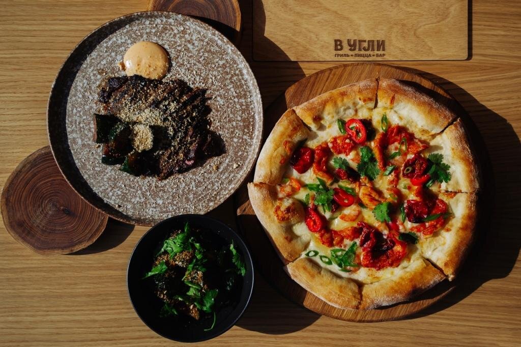 Ресторан «В угли» на проспекте Ветеранов и еще одна новость. О других открытиях Петербурга читайте здесь и здесь. Тревожные заметки редактора. Микро-размер наших Ежеедельников становится нормой: каждый второй выпуск в последние пару месяцев выходит с заголовком «Один новый ресторан в Петербурге». Сохраняем спокойствие, обновляем подборку заведений, которые, надеемся, скоро откроются, и всячески желаем рестораторам вдохновения! И гостей. В угли У ресторана «В угли» две специализации: тесто и огонь. К Италии с любовью: домашняя паста (от 550 руб.) и пицца 25 см в диаметре (от 420). Среди начинок — сырная груша с печеным кешью (470), цыпленок тандури (550), креветки в азиатском стиле (650). В не меньшем почете здесь гриль: стейки, бургеры, колбаски, бедро, форель — все прямиком с углей. Старые знакомые вроде тартаров, тако, сырных шариков, зеленого салата с авокадо тоже на месте. В компанию выбирайте коктейли (от 390), вино (от 310), пиво (от 230). Мы все вам всегда забронируем! Пишите те