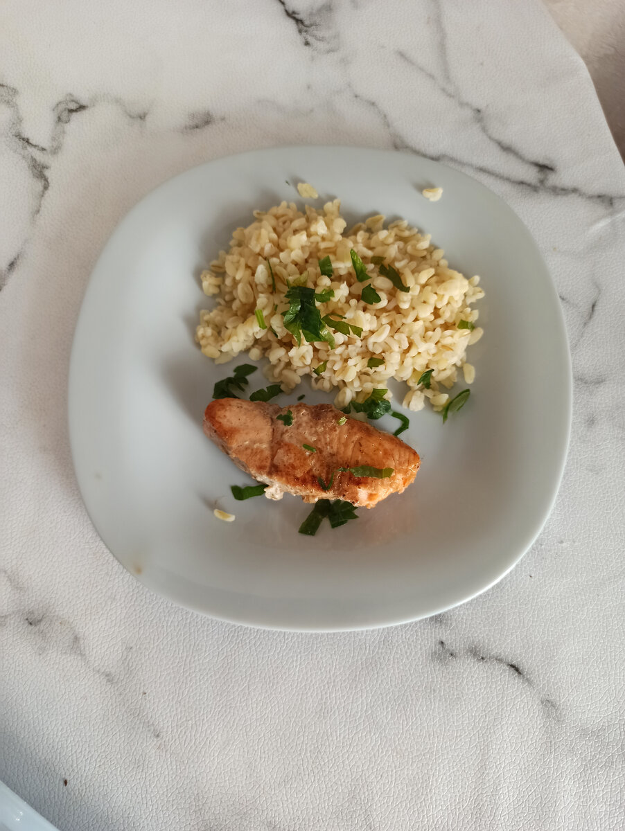 Ингридиенты: Булгур 150 гр. Филе форели 350 гр. Соевый соус Приправа для рыбы Петрушка Способ приготовления: Рыбу замариновать (соевый соус и приправа) Обжарить на сковороде с двух сторон Булгур сварить Красиво сервировать, приятного аппетита!