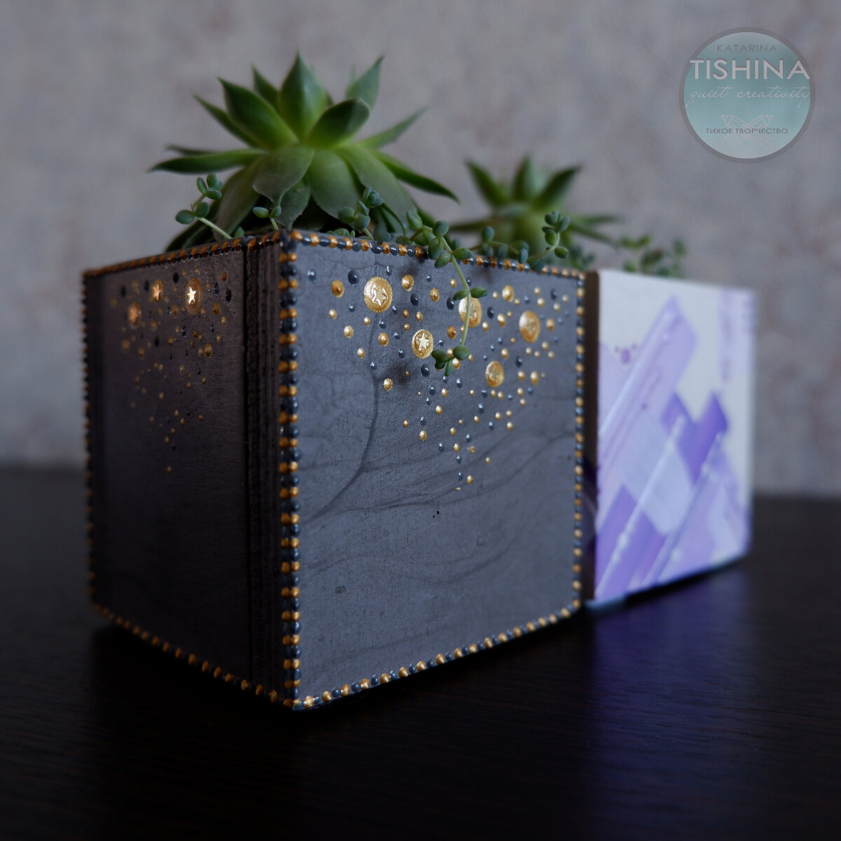 А теперь, после душноватой матчасти, я просто оставлю вам несколько фотографий получившихся именно в этой форме горшочков. В следующей статье расскажу, почему они из белого гипса получались серыми и чёрными, чем окрашивала и как украшала.