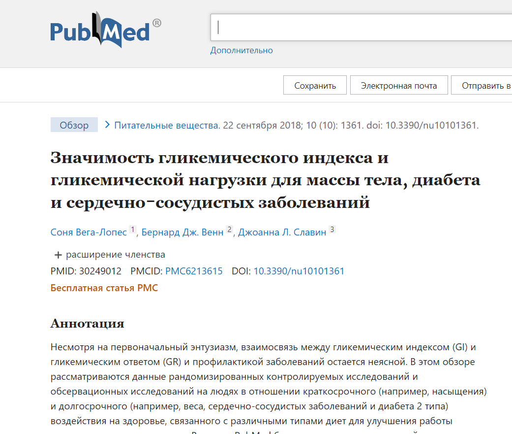 "Маловероятно, что ГИ продукта или диеты связан с риском заболевания или последствиями для здоровья. Другие показатели качества питания, такие как клетчатка или цельнозерновые продукты, могут с большей вероятностью предсказать последствия для здоровья" Т.е. быстрые углеводы не вредны. Просто клетчатка полезна В идеальном мире для большинства питание желательно чтобы стремилось к такому, но если не получается, то бояться быстрых углей не стоит