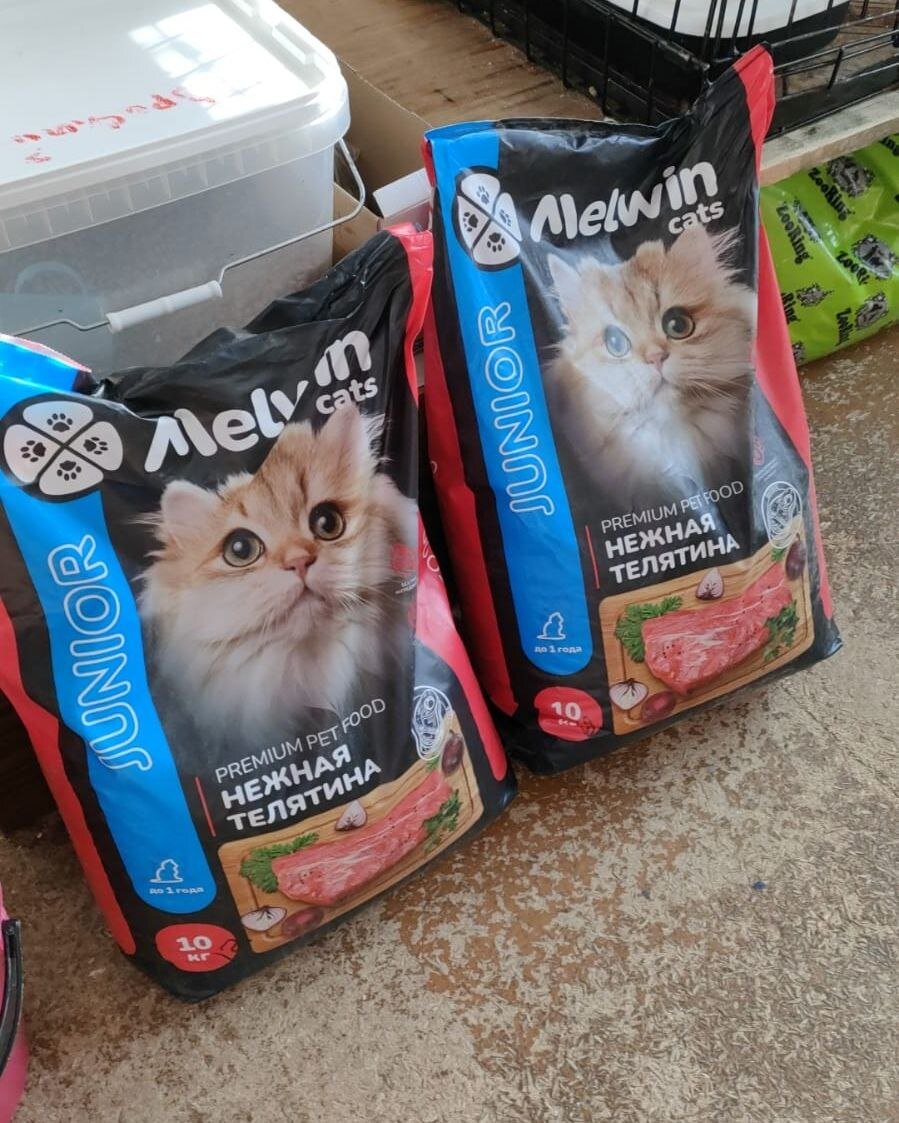 Так как на нашем попечении есть кроме взрослых котиков ещё и детки, то всегда нужен детский корм для них. В прошлый раз, когда заказывали большую партию корма, мало взяли детского и он кончился. Да ещё некоторые взрослые котеи тоже у нас иногда кушают корм для маленьких из- за проблем с деснами, ну и по другим причинам. Поэтому расход, конечно, большой и до следующей закупки Зооринга мы не дотянули и пришлось заказать два мешка другого корма, так как Зооринг нам сейчас встанет очень дорого из- за того, что маленький объём.