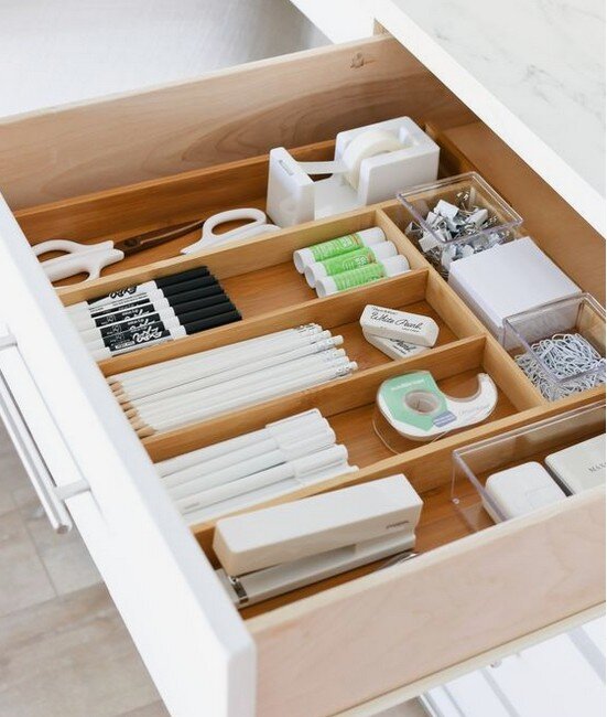 Предлагаем рассмотреть нашу любимую тему про удобное и рациональное хранение применительно к учёбе, а точнее, к организации рабочего места ученика и хранения канцелярии. Вот несколько идей, которые помогут дома быстро находить ручки, карандаши, клей, скрепки и прочие школьные принадлежности: Используйте ящики или коробки с отделениями: это позволит разделить канцелярские предметы по категориям и хранить их в одном месте.