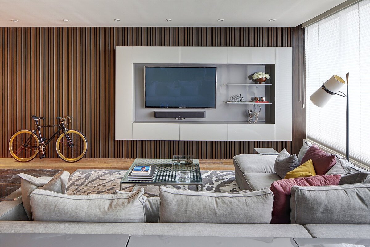 Теперь давайте рассмотрим 10 советов по оформлению ТВ зоны, которые помогут избежать "голой" стены и добавить стиля в ваш интерьер: