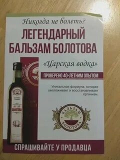 Царская водка. Бальзам Болотова. Приготовление и лечение царской водкой. «Бальзам Болотова» применяют как профилактическое средство, которое повышает иммунитет, способствует уменьшению риска различных заболеваний, предотвращает инсульт и инфаркт. «Бальзам Болотова» способствует общему омоложению организма. Помогает при заболеваниях ЖКТ, изжогах, герпесе, геморрое, рака и СПИДа. Царскую водку необходимо употреблять сразу после сна, т.к. он нейтрализует вредные вещества, которые скапливаются в организме человека в процессе сна. После приема вы будете чувствовать себя бодрым. Царскую водку Болотова («Бальзам Болотова») нужно употреблять: 1. Для стимуляции образования ферментов желудочного сока (пепсинов). 2. Для нормализации пониженной секреции желудочного сока. 3. Для нормализации нулевой кислотности желудочного сока. 4. Для разжижения крови в кровеносной системе. 5. Для нейтрализации повышенного содержания сахара в крови и очищения сосудов от солей жирных кислот. 6. Для омоложения ор