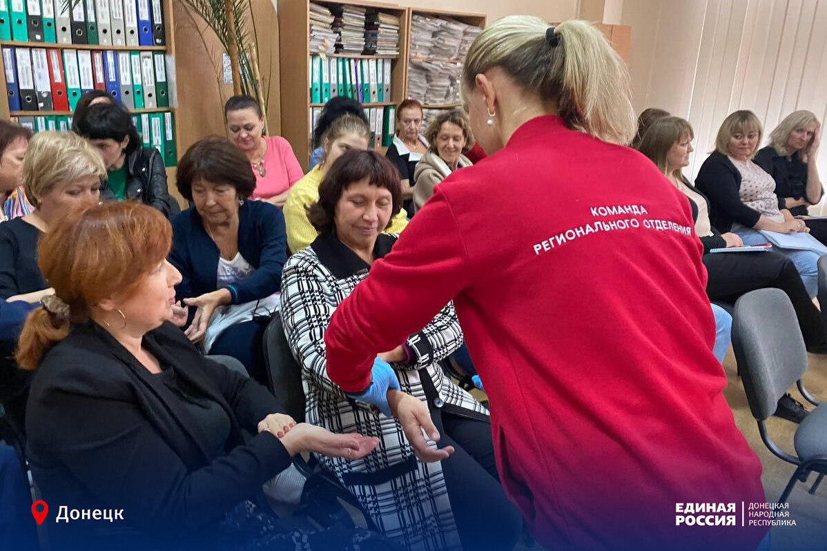 Рассказывают и показывают представительницы Женского движения Единой России. Они продолжают важную миссию – обучение первой медицинской помощи жителей Республики. Совместно со Всероссийским общественным движением «Волонтеры-медики» они провели тренинг по «Сестринскому делу» для сотрудников Донецкого городского центра занятости.