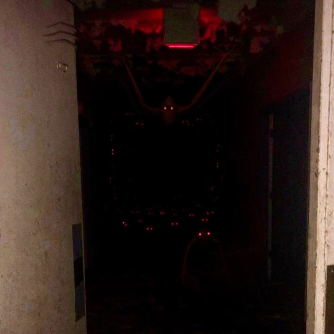 Пока бежал, несколько раз заметил проходы в комнаты, отличающиеся от типичных повторяющихся коридор. Я видел какие-то офисные помещения, кремационные залы, а так же нечто совершенно непонятное. Пустые комнаты с высоким потолком, заросшие какой-то пульсирующей чёрно-красной массой.