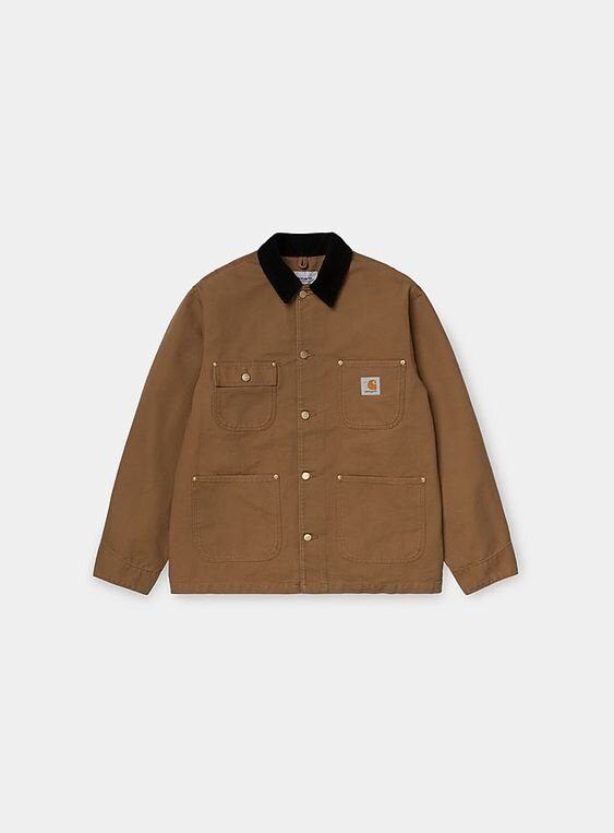 1. Рабочая куртка Carhartt: Классическая рабочая куртка Carhartt мгновенно узнаваема благодаря прочному холщовому материалу и характерному коричневому цвету. Изначально созданная для железнодорожников, эта куртка сама по себе стала модным трендом.
