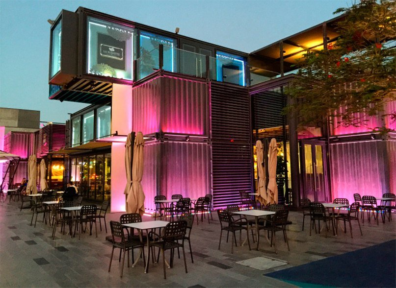 - Контейнеры, окрашенные в яркие нестандартные цвета - фиолетовый, лайм, коралловый. Это создаст оригинальный фасад.