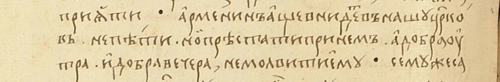 Арменинъ аще внидетъ въ нашу церквоь, не пети, нои престати при немъ, а добра утра, и добра вечера, не молвити ему.