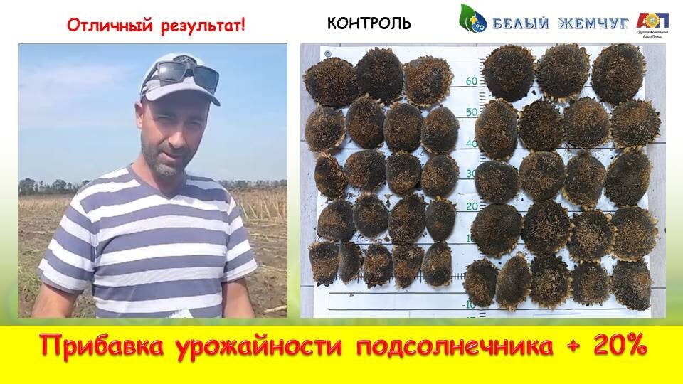 Результаты применения органо-минерального комплекса «Белый Жемчуг Универсальный + Хлорофилл» на подсолнечнике