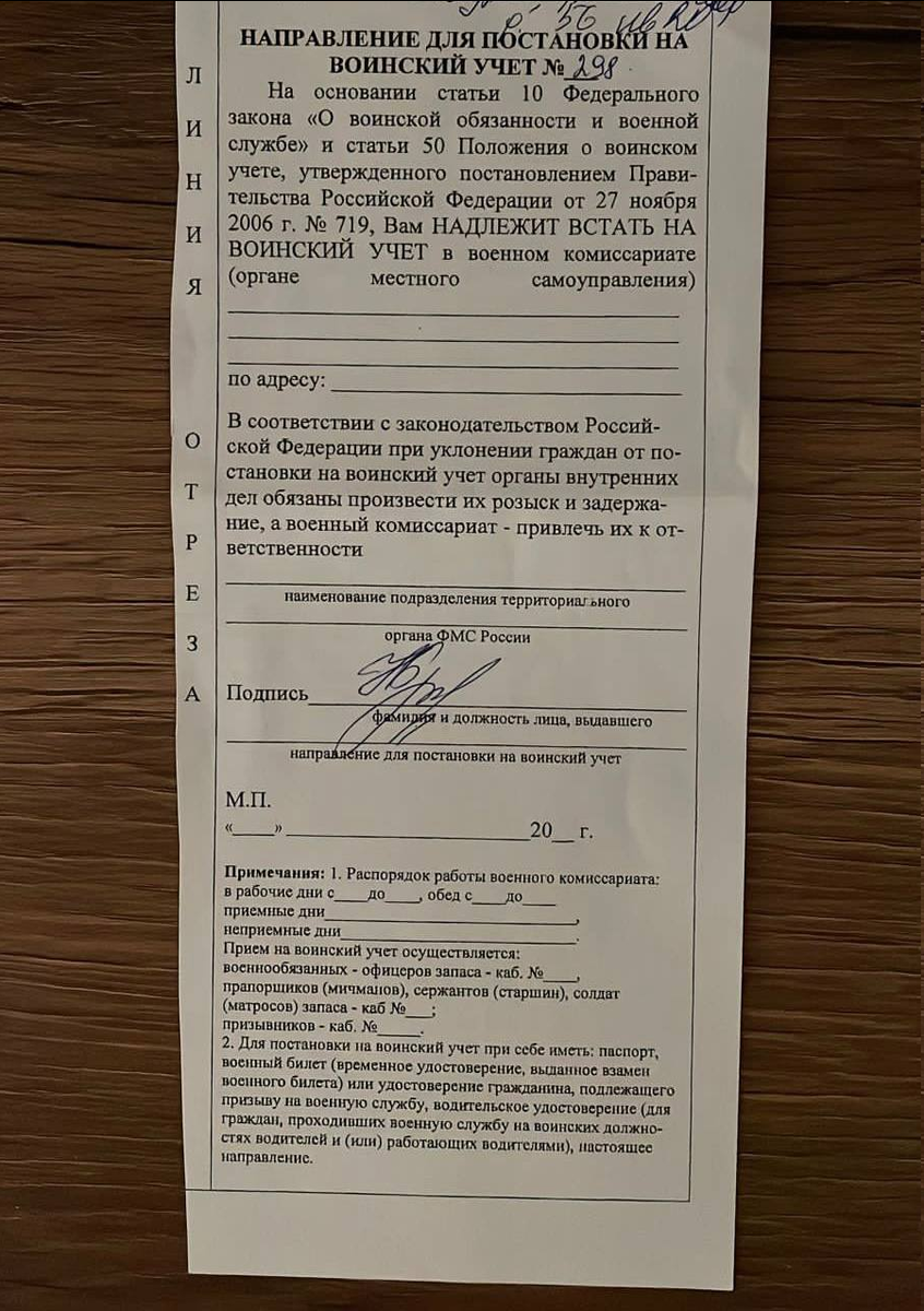 Смотрите, друзья, какая прелесть! Такую бумажку выдали гражданину 28 лет при попытке получения загранпаспорта. Мужчина обратился в МФЦ за получением услуги, подал все необходимые документы (их исчерпывающий перечень утвержден законодательно), спустя месяц пришел за паспортом, а его там спрашивают: мол, на воинском учете состоишь, дружок? Он отвечает: а какое, собсна, ваше дело? Ну они ему и дают вот эту прекрасную бумажку, мол, встанешь на учет - приходи за паспортом. 🤔