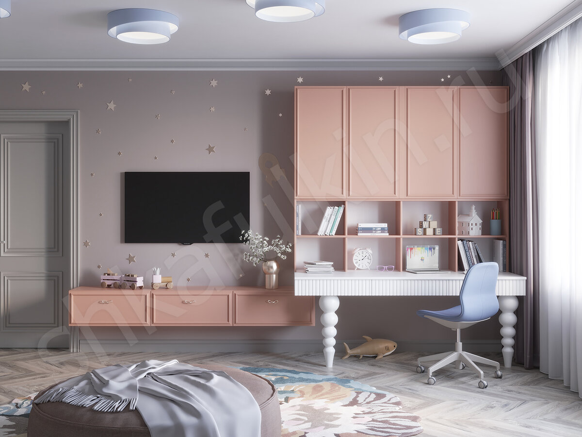 В детской комнате комбинация нежно-розового с пастельными цветами может помочь создать сказочную атмосферу, стимулирующую у детей развитие фантазии и креативности. Как правило, этот цвет используют в комнате для девочек.