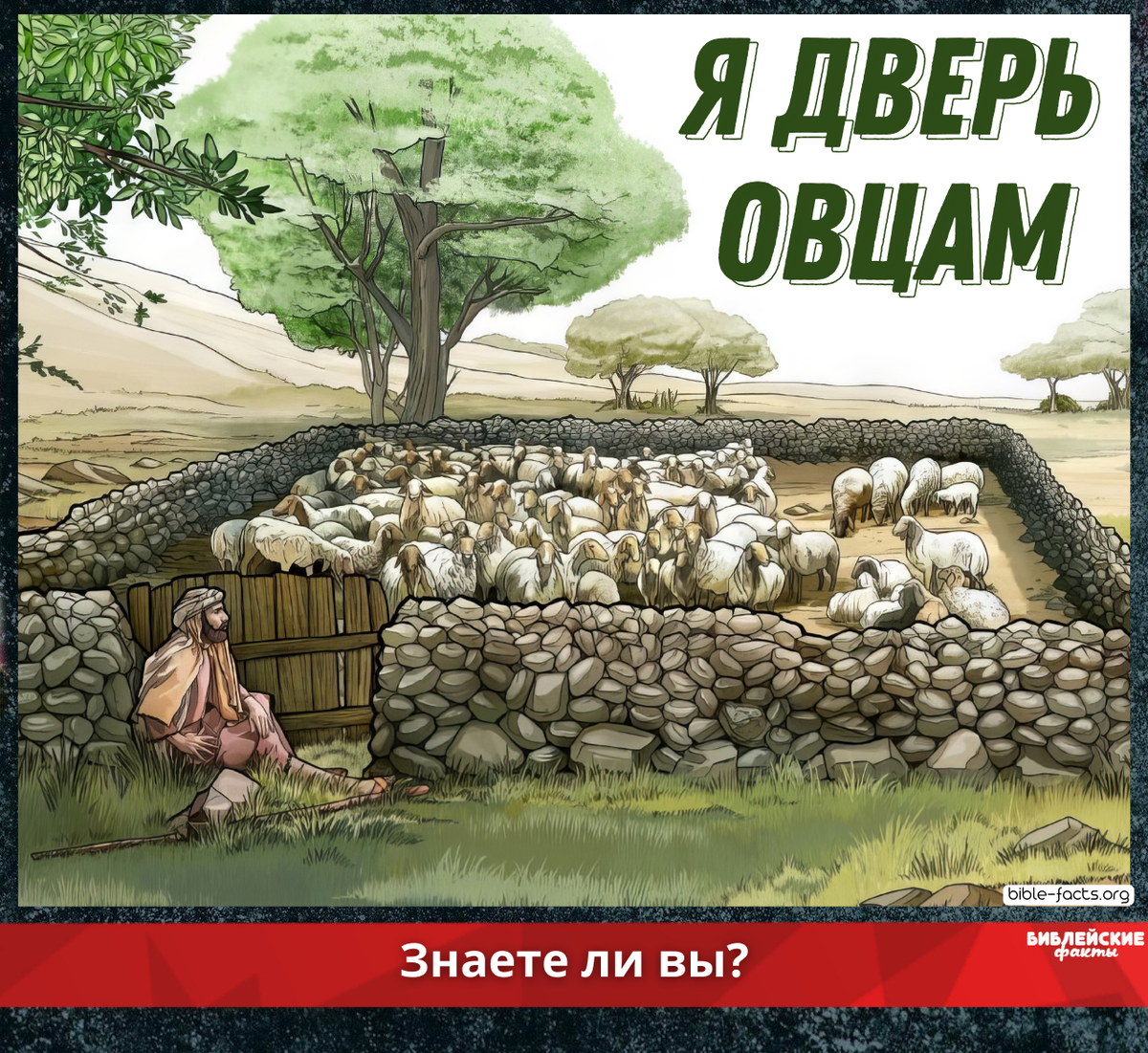 В библейские времена овчарни были с каменными стенами и только одним входом. Это был загон, предназначенным для защиты овец от воров и хищных животных.
