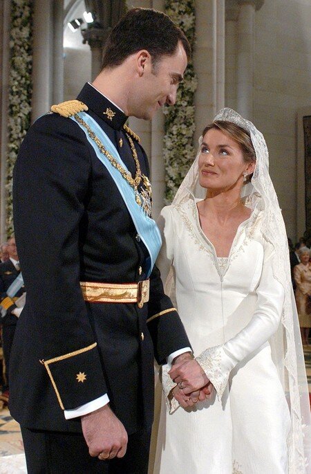 Платье стоимостью в 2 небольших самолёта, возможно ли это? Как выяснилось - да! Самое дорогое свадебное платье в истории принадлежало Королеве Испании Летиции. Вы удивитесь, но оно в десятки раз дешевле, нежели свадебные платья нескольких поколений семьи Виндзоров. Ее платье уверенно вошло в историю своей невероятной ценой, хотя если посмотреть на свадебное фото, смотрится оно довольно просто. Существуют примерные стандарты цен на свадебные платья монарших особ, это не больше 200.000 долларов за всю историю. Однако, в случае с Летицией речь идет о совершенно невероятной сумме. Причем, Летиция вовсе не принадлежит к знатной династии. Она всего лишь простая Журналистка, которая по воле судьбы смогла покорить сердце наследного принца Испании. Она хотела выделиться среди всех существующих поколений королевских особ. Именно поэтому, готовясь к торжеству, она выбрала наиболее дорогого кутюрье - Мануэля Пертегаса. Он посоветовал использоватьв качестве ниток чистейшее золото, в связи с чем