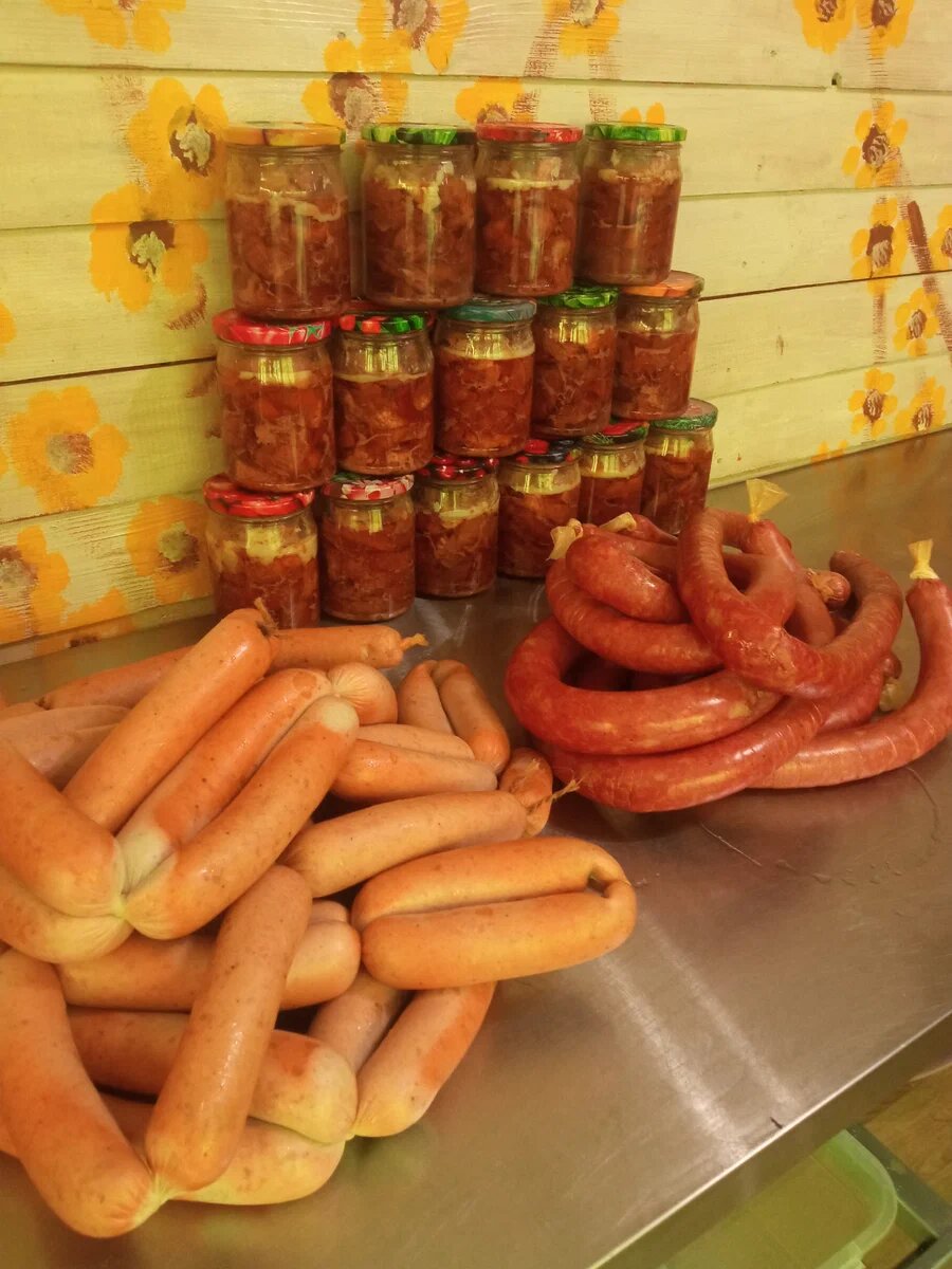 Свиные сардельки, краковская колбаса, тушёнка из говядины. Будни нашего колбасного цеха