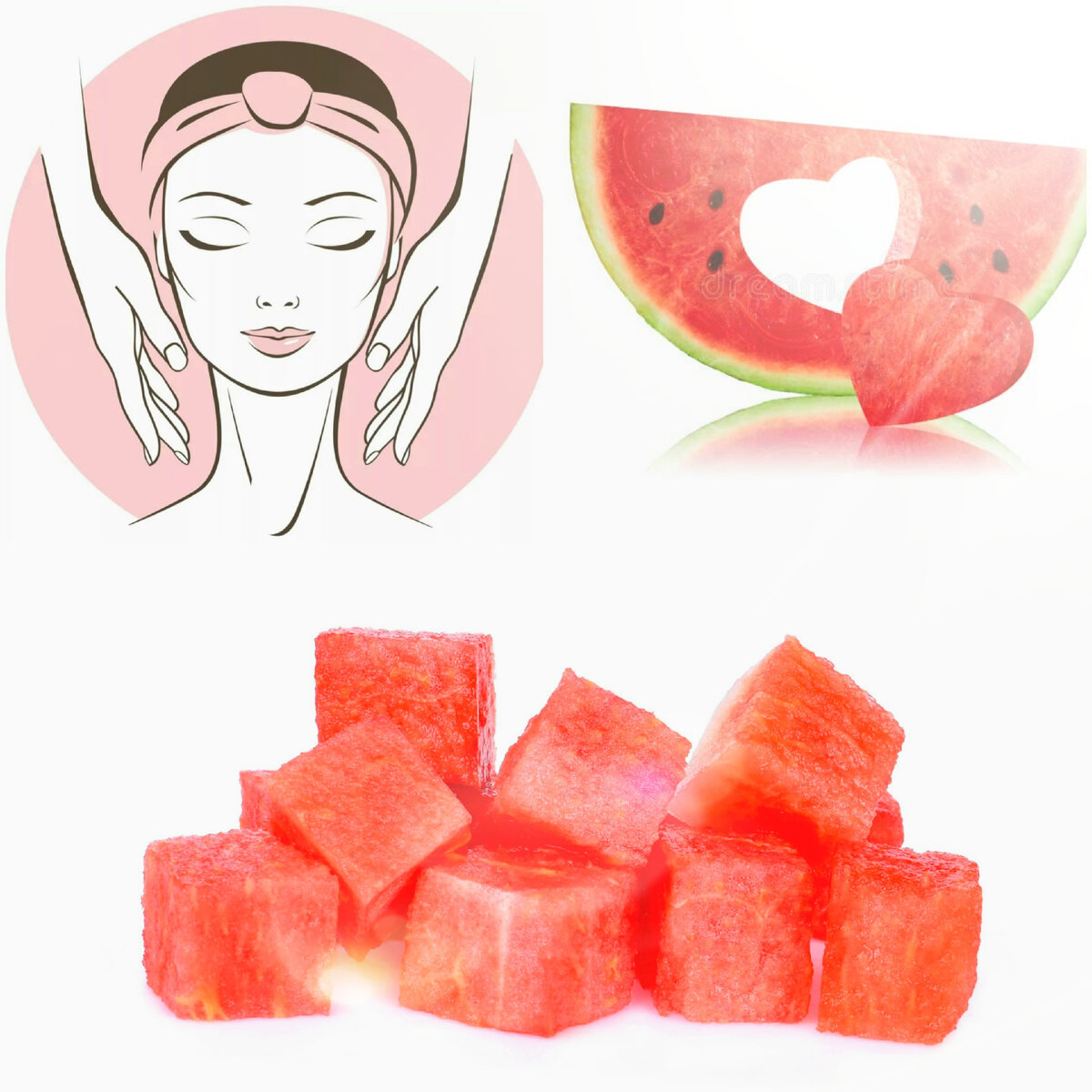 Сезон арбузов в самом разгаре. Хороший, качественный арбуз полезен не только для организма, но и в домашней косметологии. Арбуз богат витамином С, А, железо, калий, магний, теамин, пектин, кальций, фолиевую кислоту, клетчатку. Это хороший помощник в борьбе с обезвоживанием кожи, воспалениями, мелкими морщинами, высыпаниями и акне, пигментными пятнами, веснушками. Арбуз хорошо повышает тонус кожи, осветляет, борется с угрями и прыщами. Самый простой способ использования арбуза, заморозить его мякоть или сок и ежедневно протирать лицо кусочком льда. Эти процедуры помогают поддерживать тонус кожи и бороться с прыщами. В сезон арбузов активно помогает бороться с прыщами ежедневное протирание лица арбузной коркой (белая часть). Арбуз и мёд Нам понадобится мякоть арбуза (2 столовые ложки) и мед (2 столовые ложки) Смешиваем ингредиенты и наносим на лицо на 20 минут. Такая маска: Арбуз с яичным белком Белок (1 шт) тщательно взбить, добавить мякоть арбуза (2 столовые ложки) Держать маску 20 мин
