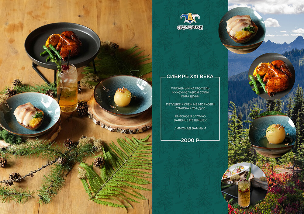 Блюда с наших гастроужинов. В нашем ресторане гости могут попробовать Сибирь на вкус. Сибирь – непокорная и загадочная, мощная и мистическая с невероятной глубиной от которой дух захватывает у каждого, кто погружается в ее таинственную природу. Традиции и культурный гастрономический код, обычаи переселенцев, вкусы детства – все это могучая Сибирь! ГАСТРО СЕТ "СИБИРЬ XXI ВЕКА" Пряжёный картофель / муксун слабой соли / икра щуки Петушки / крем из моркови / спаржа / фундук Райское яблочко / варенье из шишек Лимонад банный Все блюда подаются со спецэффектами!