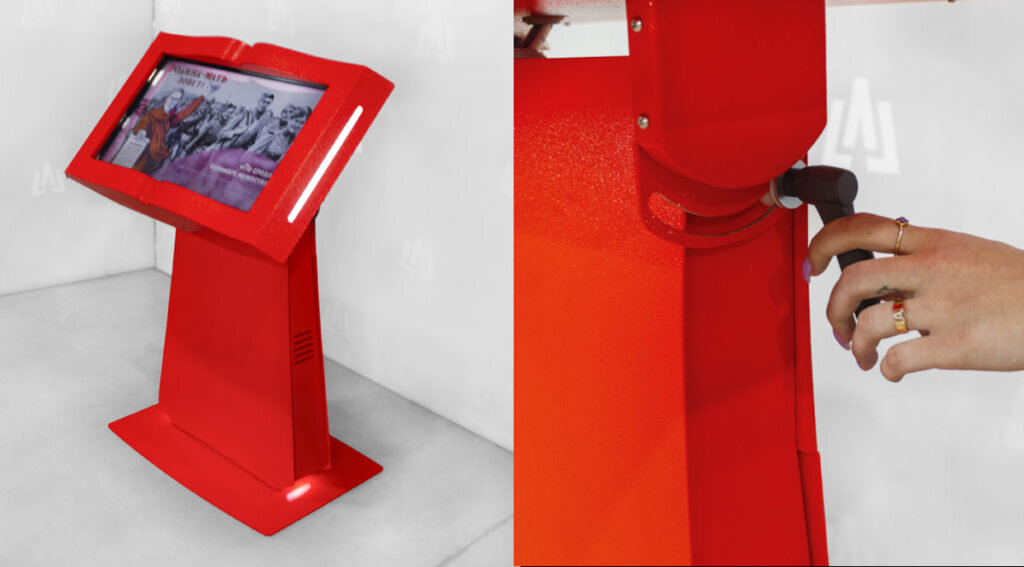 БИБЛИО — сенсорный стол, корпус которого оформлен в виде книги и предназначен для музеев, выставок и образовательных учреждений. Устойчивое основание подходит для мест с высокой проходимостью. Уникальный дизайн привлекает внимание, а интерфейс, созданный под цвета организации, поможет посетителю окунуться в атмосферу места, в котором он находится.