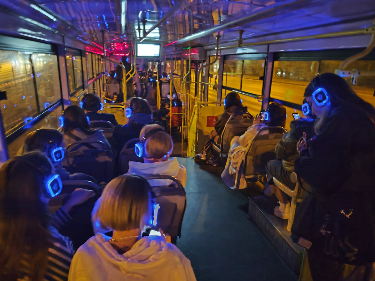 Что меня рассмешило, когда только стартовала эта ночная история в ТЮЗе, билеты продавались только на места, которые у окна. Дескать, зрителю важно наблюдать за тем, что происходит за окном транспортного средства. Но учитывая ажиотаж, теперь билеты реализуются на все места. Говорят, иногда возникают даже дополнительные на полу, на пуфиках…