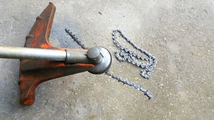 Увеличиваем эффективность триммера: меняем леску на цепь от бензопилы!