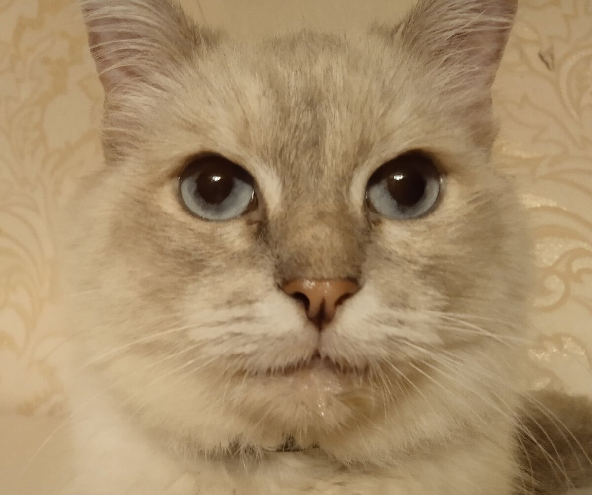 В июле на одно из предприятий города пришла кошка. Она всех покорила своей красотой и своим характером. Кошка была очень ласковой. Голубоглазка мурлыкала без конца. По ней было видно, что кошка не уличная, не бродяжка. Уж очень была ухоженная. Варианта два. Или кошка потерялась или.. Её просто выкинули на улицу, что, к сожалению, очень часто происходит в нашем городе с животными. Кошка не боялась машин, людей, животных. Она была слишком доверчива. В этом её проблема. На улице такую нельзя было оставлять. Она бы там просто не выжила. Погода стояла ненастная: каждый день шли дожди. Сотрудниками предприятия было принято решение поселить кошку временно к сторожу Николаю. Именно он почти месяц за ней ухаживал. Ну а остальные её подкармливал