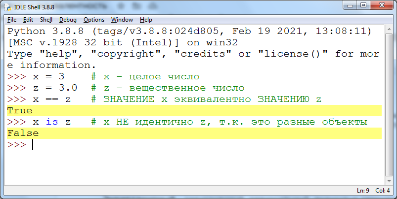 Примеры проверки на идентичность и эквивалентность в Python: