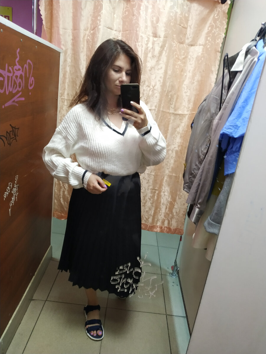 Всем привет, кто со мной не знаком, меня зовут Екатерина, и я стилист- имиджмейкер . Развиваю миф, что стиль это дорого) Сегодня я посетила магазин секонд-хенд Вова, смотрите что получилось Джемпер с V- образном вырезом, актуального белого цвета с черными линиями по вороту и рукавам, актуальная модель в этом сезоне. Юбка плиссе черная, отличный вариант на осень. Не обращайте внимание, обувь совсем не по сезону)) Цены дешевле в три раза, чем в масс-маркете, там похожий джемпер будет стоить около 3000-3500 тыс рублей. Его можно носить как в заправленном виде, так и на выпуск, подойдет с любым низом( джинсами, брюками, шортами) Так же можно носить его с ремнем. Подобрала комплект, вещи продавались отдельно, отличный актуальный комплект на осень , модная в этом сезоне полоска на юбке, и не менее актуальный леопардовый принт на джемпере, а еще вещи плотные, отличного качества, да и цена опять же, ниже чем в масс-маркете, где качество иногда проигрывает Ниже представлена актуальная к