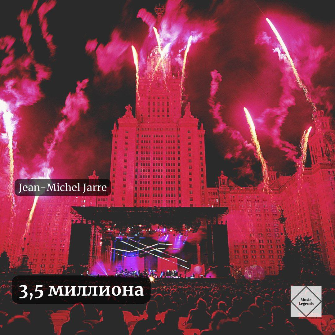 Жан-Мишель Андре Жарр - абсолютный рекордсмен этого жанра. Славившийся перформансами под открытым небом с огромными лазерными дисплеями, большими проекциями и фейерверками, Жан-Мишель однажды выступил перед 3,5 миллионами людей в Москве в 1997 году. Ещё одним его рекордом считается выступление в День взятия Бастилии 1990-го года: там его слушали 2,5 миллионов людей.