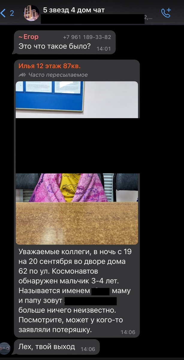 Он ушел из дома, пока родители спали. По чатам воронежских домов в различных мессенджерах сегодня начало расходиться сообщение, на первый взгляд похожее на фейк. В нем неизвестный автор сообщает, что нашел ночью на улице Космонавтов одинокого маленького ребенка. Единственное, что он смог рассказать о себе – это назвать свое имя и имена родителей. Информацию через сарафанное радио, собственно, и распространяли для того, чтобы найти родственников малыша. В полиции нам подтвердили пропажу ребенка и рассказали чуть больше информации. — Действительно, сообщение поступало в отдел полиции. Около 2 часов ночи жители рассказали, что обнаружили у дома №62 по улице Космонавтов ребенка. Он был на детской площадке без взрослых. На вид около четырех лет. На место выехали сотрудники полиции, — сообщили корреспонденту «Блокнота» в воронежском главке. Пока полицейские разбирались чей ребенок, мама объявилась сама. Женщина 1983 года рождения сообщила об исчезновении сына со схожими приметами. В дальнейш